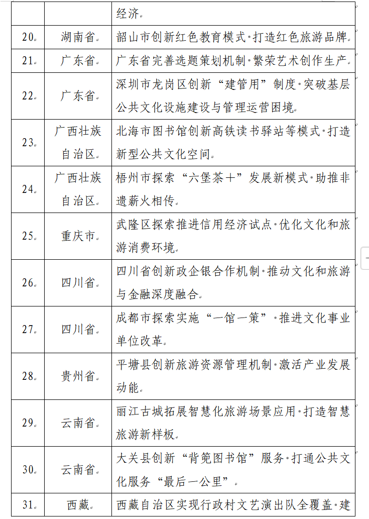 关于2022—2023年度文化和旅游领域改革创新典型案例名单的公示