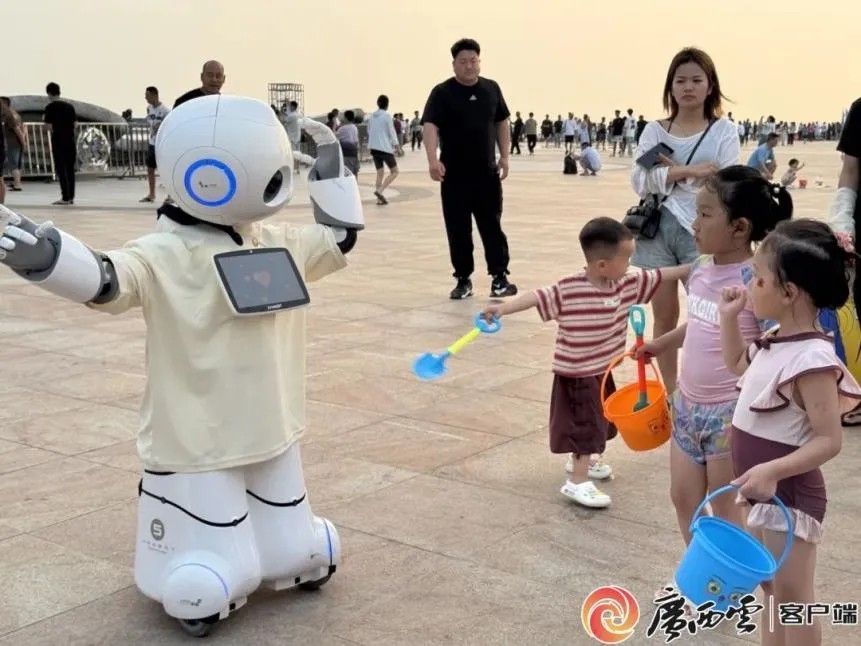 广西旅游景区首台U05类人型机器人与游客互动 图源:广西云客户端