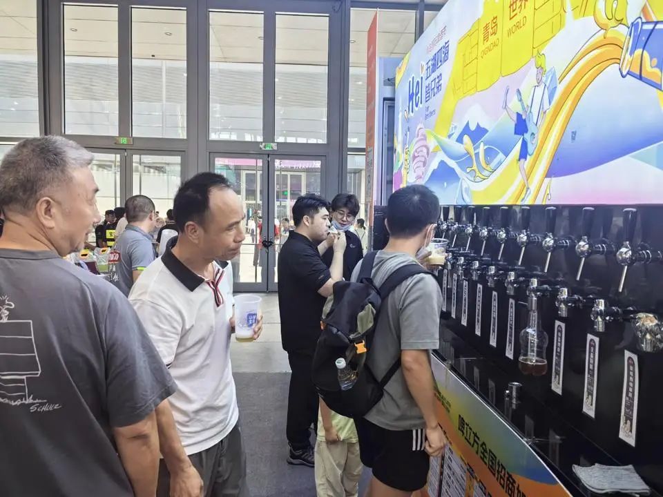 主办方今年给了栗俊强他们一个七八十平米的场地,让他们尽情发挥。展会第四天,线上销量已超过2024年同期总和,现场一度因 “里三层外三层” 的客流不得不调整服务模式,“我们开展10元无限畅饮活动,并退到展位后方,让顾客自己体验打酒,这种被信任的感觉太不一样了。”