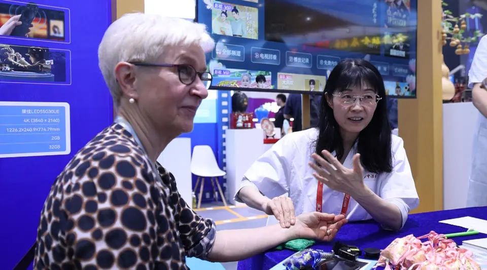 “太准了!中医太神奇了,没有人可以这么了解我,但是她可以!”前来参展的德国纽伦堡市职业教育局局长Ulrike Horneber听完滕晶教授对她的身体状况和性格的分析后,连连惊呼。