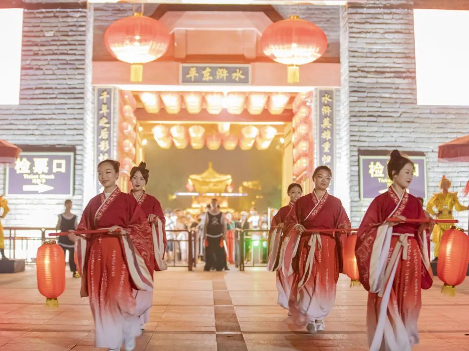 每当夜幕降临,城中燃起一片璀璨灯海,金碧辉煌。水浒影视城,打动人心的,何止曼妙风光。